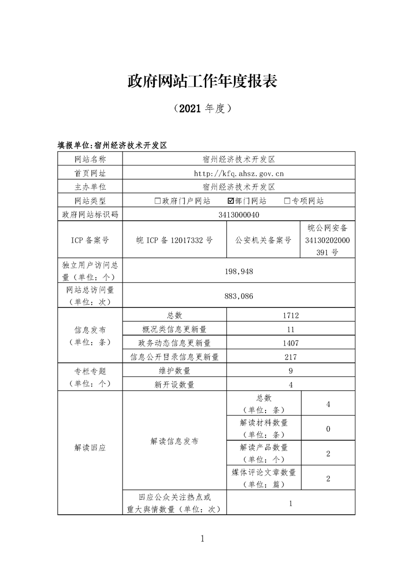 宿州经济技术开发区2021年度政府网站工作报表.doc