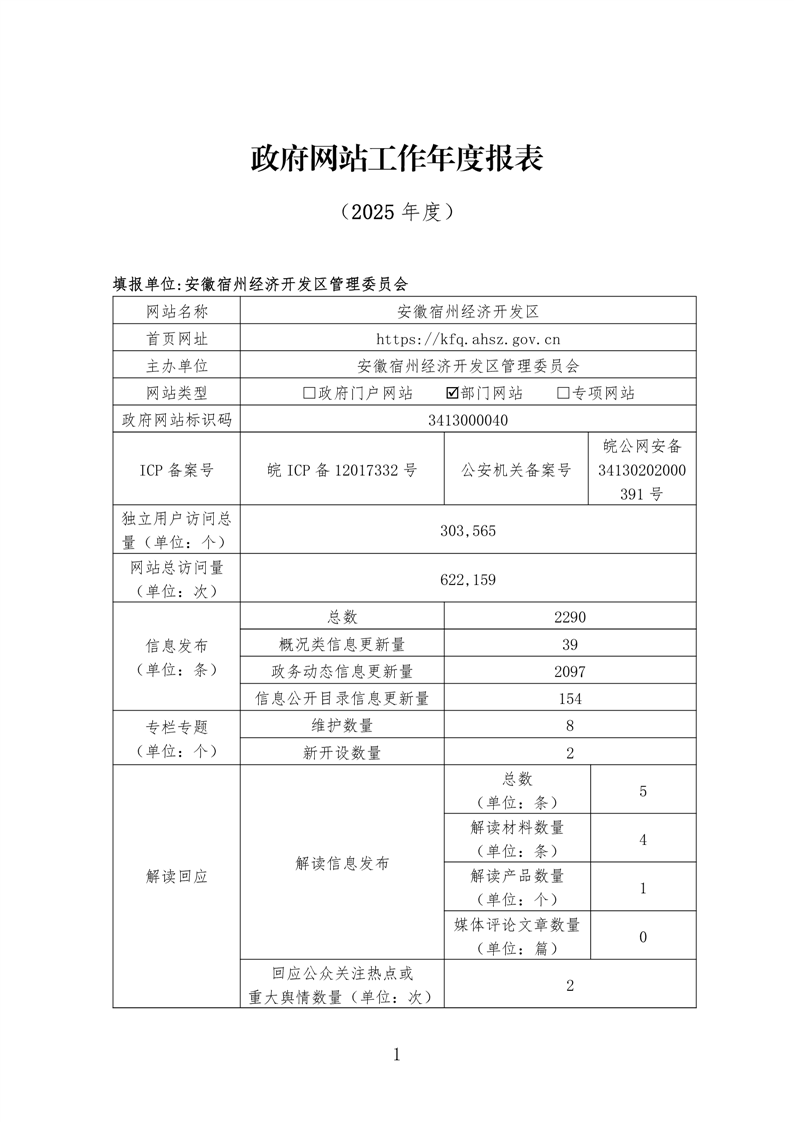 安徽宿州经济开发区2025年度政府网站工作报表.doc