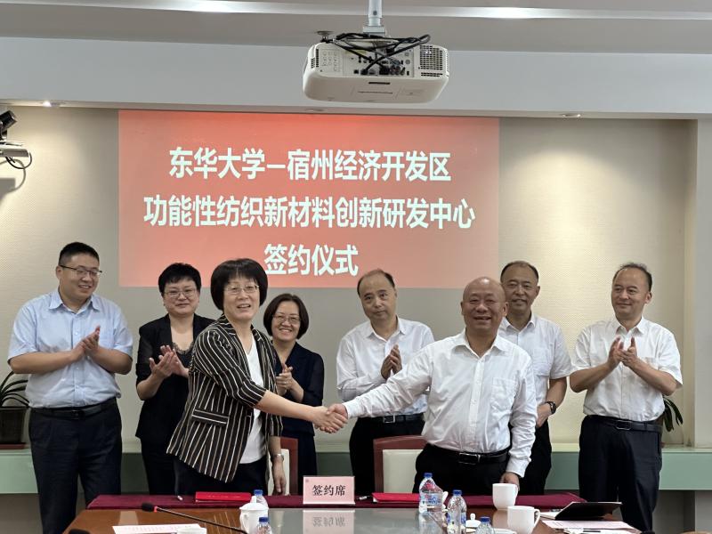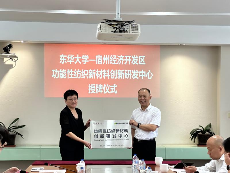 9月24日上午,“东华大学-宿州经济开发区功能性纺织新材料创新研发中心”签约暨授牌仪式在东华大学隆重举行。此次合作聚焦功能性纺织新材料领域,整合政府、高校与企业三方资源,旨在以创新驱动助力宿州市纺织服装产业转型升级,是宿州积极融入长三角一体化发展、打造皖北乃至淮海地区纺织新材料高地的重要举措。