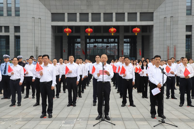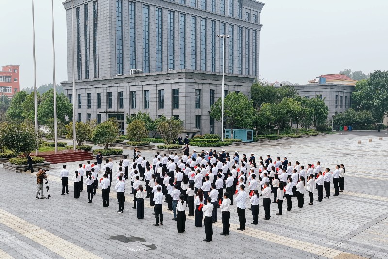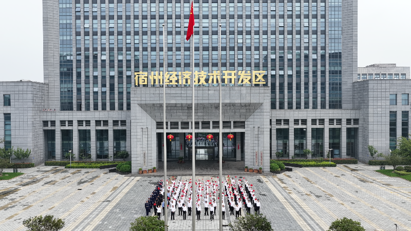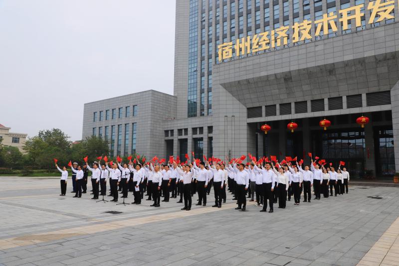 为热烈庆祝中华人民共和国成立76周年,表达宿州经开区干部群众对伟大祖国的崇高敬意,祝福伟大祖国繁荣昌盛,激发爱党爱国热情,9月30日,宿州经开区机关百名党员干部群众代表在管委会大楼前广场隆重举行庆祝中华人民共和国成立76周年“同升国旗,同唱国歌”活动。