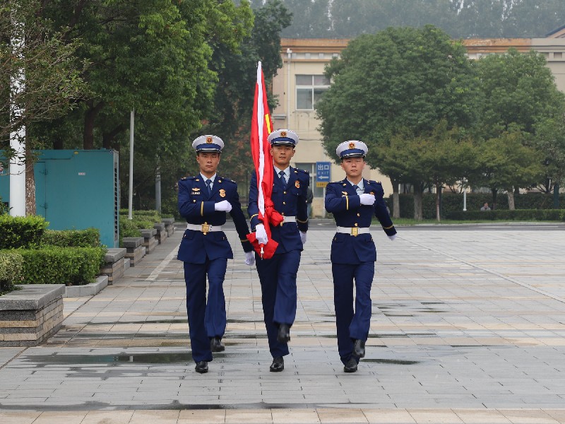 上午8时,三名英姿飒爽的消防队员迈着铿锵有力的步伐,护卫着鲜艳的五星红旗走向升旗台。伴随着雄壮激昂的《义勇军进行曲》,全体人员肃立注目,高唱国歌,凝视五星红旗冉冉升起,衷心祝愿祖国繁荣昌盛、人民幸福安康。