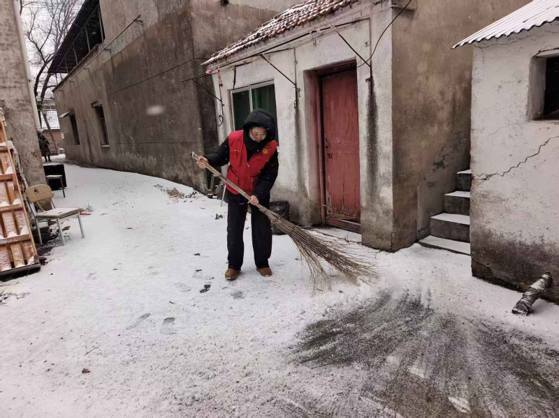 协同发力除冰雪,出行通道保畅通。针对住宅小区道路狭窄、人流集中、机械作业受限的特点,街道统筹协调物业企业、党员志愿者等力量,采取人工清扫、融雪剂辅助的作业模式,重点清理小区出入口、单元门口、地下车库坡道、老年活动区等关键区域积雪结冰。累计出动除雪人员500余人次,使用铁锹、推雪板等工具450余件,撒布融雪剂50袋,备齐发电机、应急照明灯、扫把、粘毯等应急物资,确保居民出行“最后一米”安全通畅。