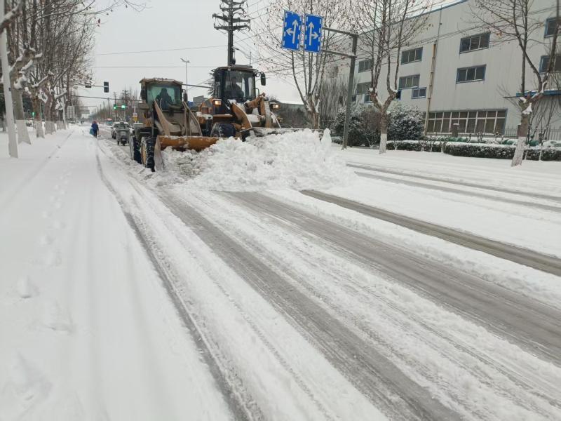 市城管局经开中心以“机械为主、人工为辅”为原则,集结应急人员260余名,调动除雪铲车22台、撒布机8台,连续对主次干道、桥梁、市场周边等重点区域开展循环清雪除冰作业。