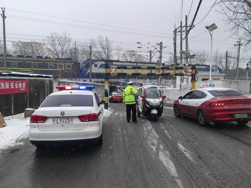 交警六大队全员在岗,加强指挥疏导、撒盐融雪与应急救援,特别保障城乡结合部等关键运输通道,助力生活物资进村入户,精准守护辖区道路通行安全,全力保障群众出行无忧。
