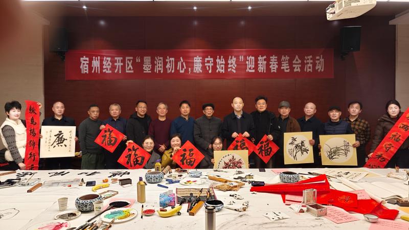 新春将至,年味渐浓。为弘扬中华优秀传统文化,厚植廉洁文化根基,营造喜庆祥和、风清气正的节日氛围,宿州经开区精心举办“墨润初心,廉守始终”迎新春笔会活动。活动现场,以笔墨传情、以书画言志,为广大职工献上一场兼具文化底蕴与廉洁内涵的新春文化盛宴。