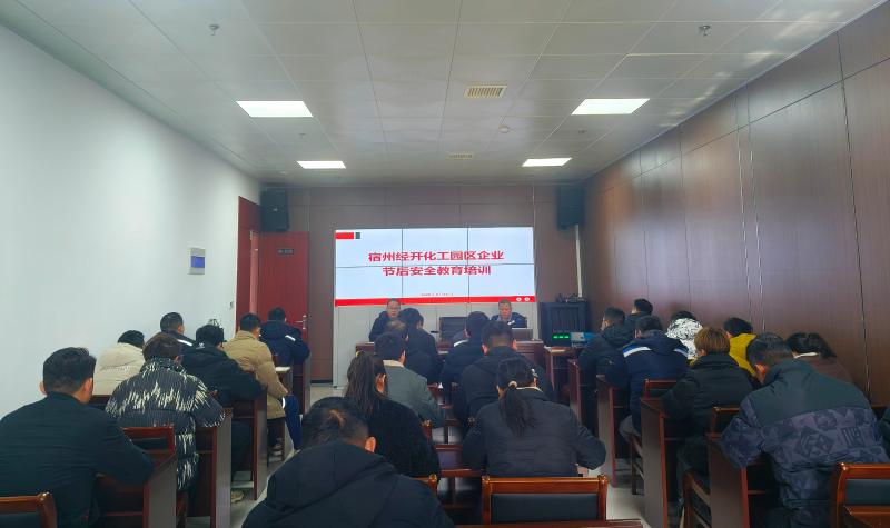为切实防范化解节后复工复产安全风险,坚决遏制安全生产事故发生。2月25日,宿州经开化工园区管理办公室组织召开企业节后安全教育培训会议。园区安全监管人员、企业安全负责人共计30余人参会。