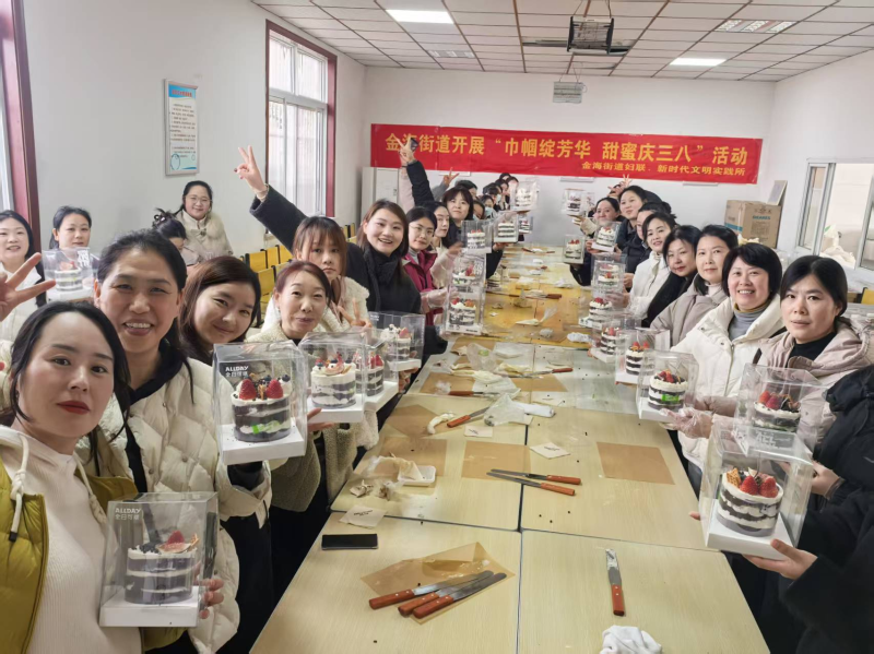 趣味活动添雅韵,温情关怀暖人心。3月6日下午,金海街道妇联联合市公安局经开区分局开展“巾帼绽芳华 甜蜜庆三八”蛋糕DIY主题活动,在欢声笑语中分享节日喜悦。3月8日下午,经开区税务局、建材市场商圈举办花艺主题活动,以花为媒、以艺传情,在指尖灵动间感受美好,以花香与创意致敬新时代“她力量”。3月8日下午,九成包装妇委会开展“致敬巾帼奋斗者,绽放时代新芳华”主题活动,不仅贴心地为女职工们送上节日礼物,更组织茶话会畅所欲言,切实增强她们的归属感与幸福感。